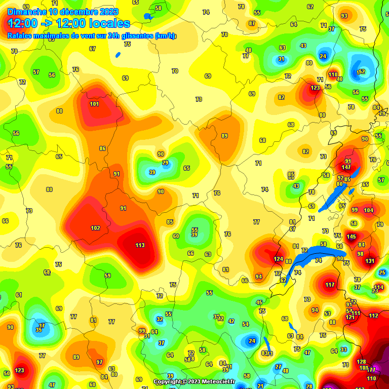 On notera au passage du front froid et donc de ces orages, de violentes rafales de vent notamment en altitude mais aussi des déferlements localisés dans les plaines environnantes.