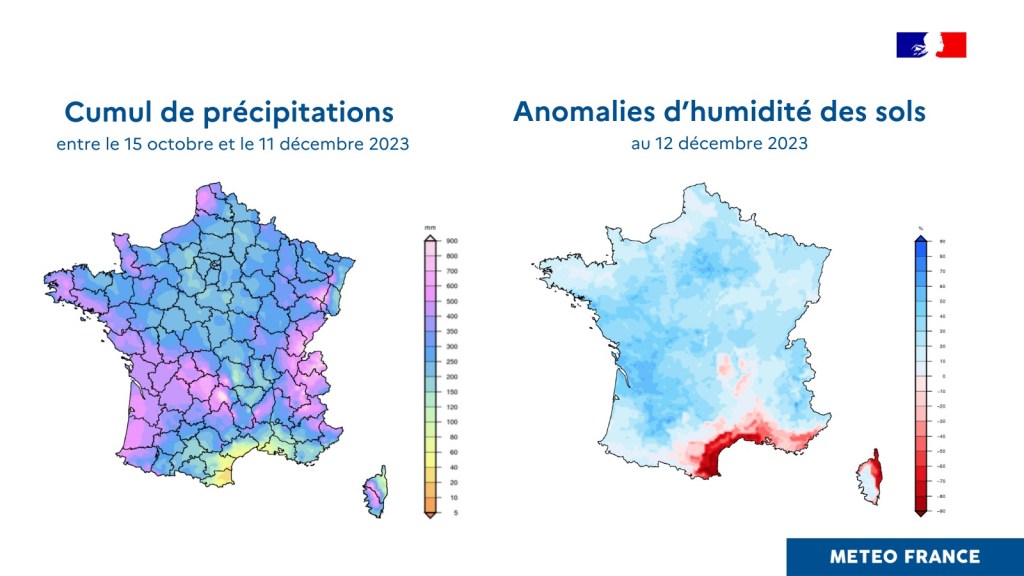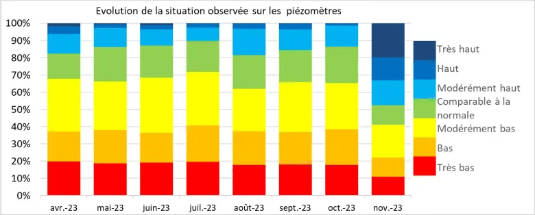 Le changement de configuration atmosphérique mi-octobre aboutissant à une « copieuse saison humide » est très favorable à le recharge des nappes phréatiques qui partait d’un niveau généralement bas.