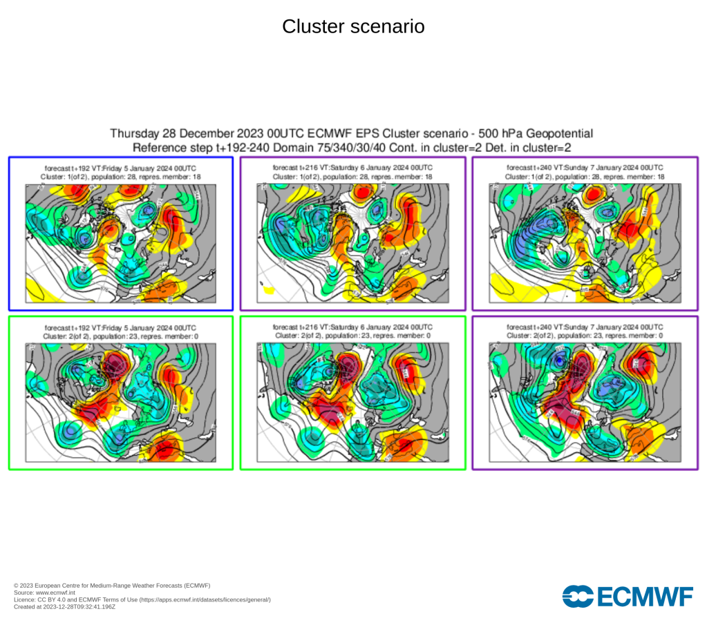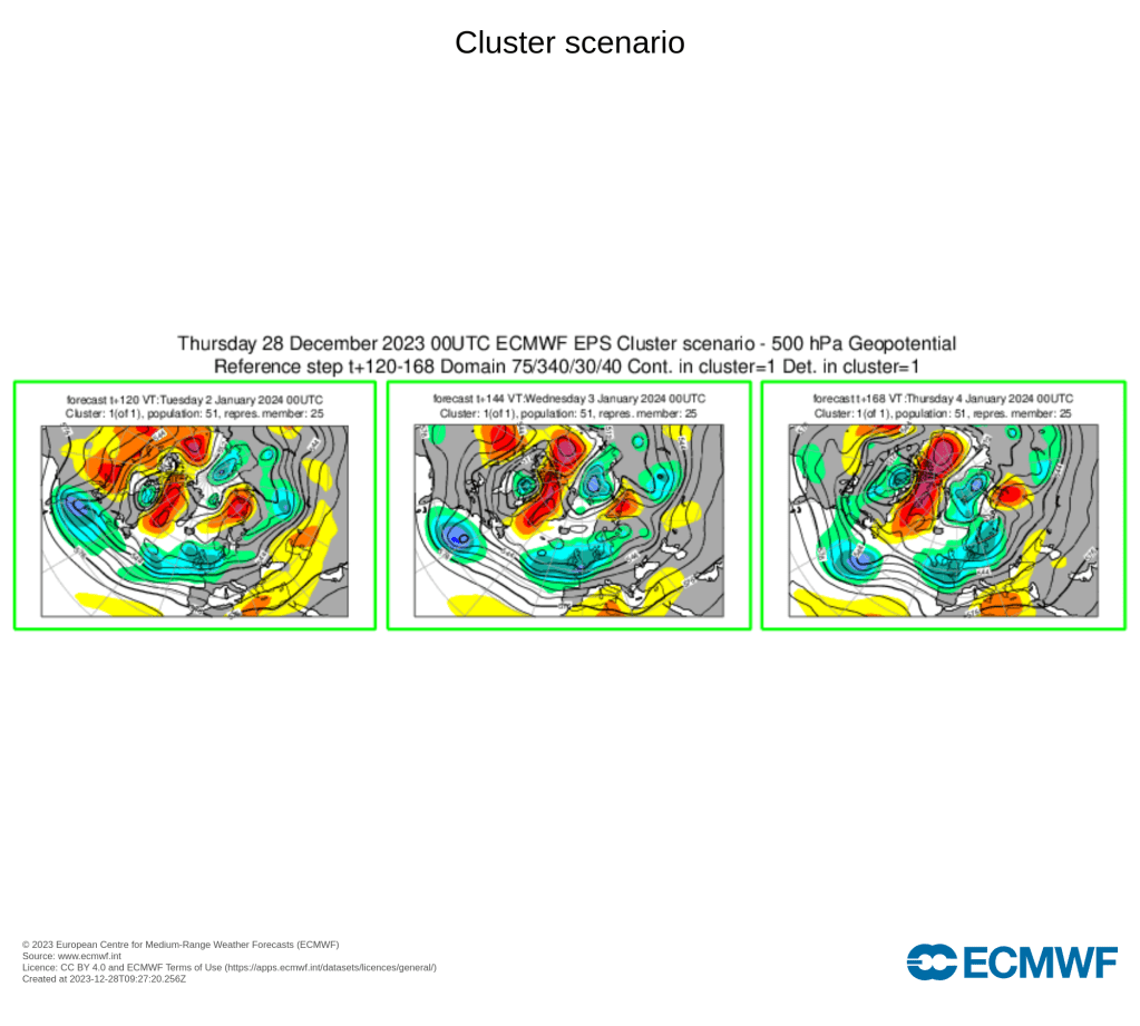 Ce qui est certain c’est que les modèles ensemblistes, réagissent fortement dès le 5 janvier avec l’installation d’un régime AO-/NAO- (on entrevoit l’anomalie positive de géopotentiels entre Groenland et Islande).