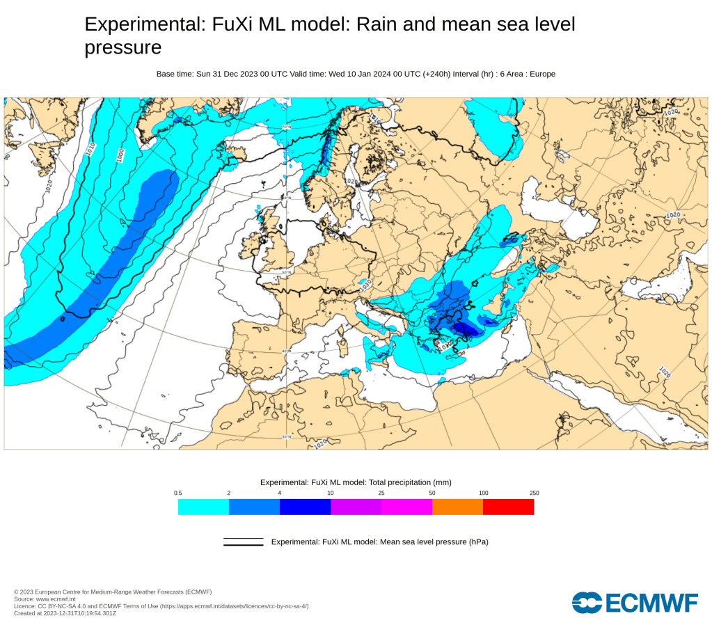 Autre scénario très plausible pour la semaine du 8 janvier et vu par certains modèles de l’IA, c’est l’écrasement progressif du blocage anticyclonique sur notre pays ce qui se traduirait par du froid mais un temps surtout sec.