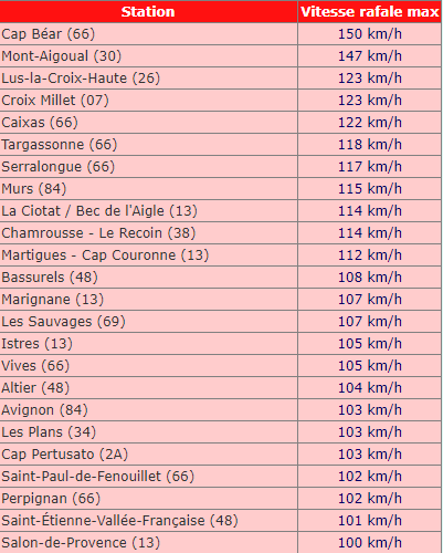 Le vent de nord à nord-est est sensible partout. Mistral et Tramontane soufflent violemment dans le nord-est.