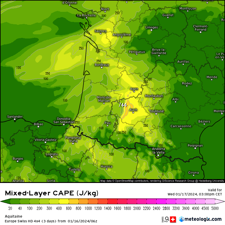 A noter avec la grande douceur s’installant sur la moitié sud et avec la présence du secteur chaud, un risque orageux présent demain après-midi dans le sud-ouest avec de l’instabilité. Le tonnerre pourrait gronder ici ou là sous les pluies.