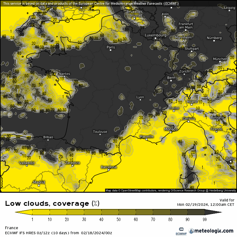 Globalement même menu pour Mardi avec un temps calme mais souvent bien nébuleux en matinée notamment sauf dans le sud-est et en Corse. L’après-midi, les éclaircies seront de plus en plus larges au sud de la Loire notamment.