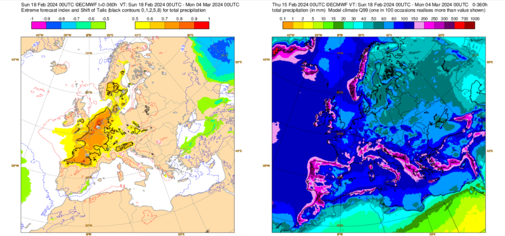 Sur les 15 prochains jour, on a un signal marqué de forts cumuls de précipitations se plaçant haut dans la climatologie notamment sur l’extrême nord, le centre-ouest et l’extrême sud-ouest du pays. De bons cumuls certainement aussi sur les régions alpines dans cette configuration. Les détails restent bien sur à affiner mais des crues et des inondations sont fort probables sur des secteurs déjà précédemment touchés.