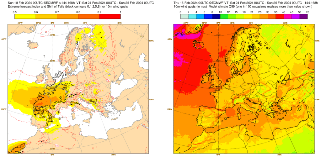Samedi, on surveillera une possible perturbation très active avec un creusement dépressionnaire marqué qui pourrait donner un coup de vent à tempête notamment sur le centre-ouest. Des disparités demeurent entre modèles ce qui est normal vu l’échéance lointaine mais le risque parait bien présent.