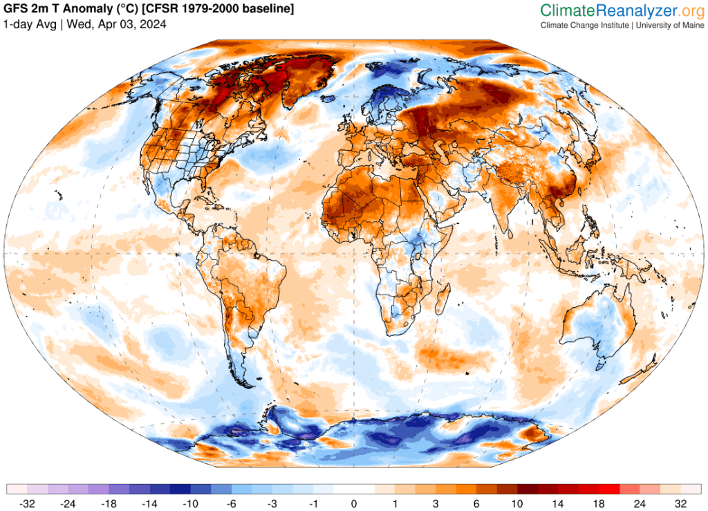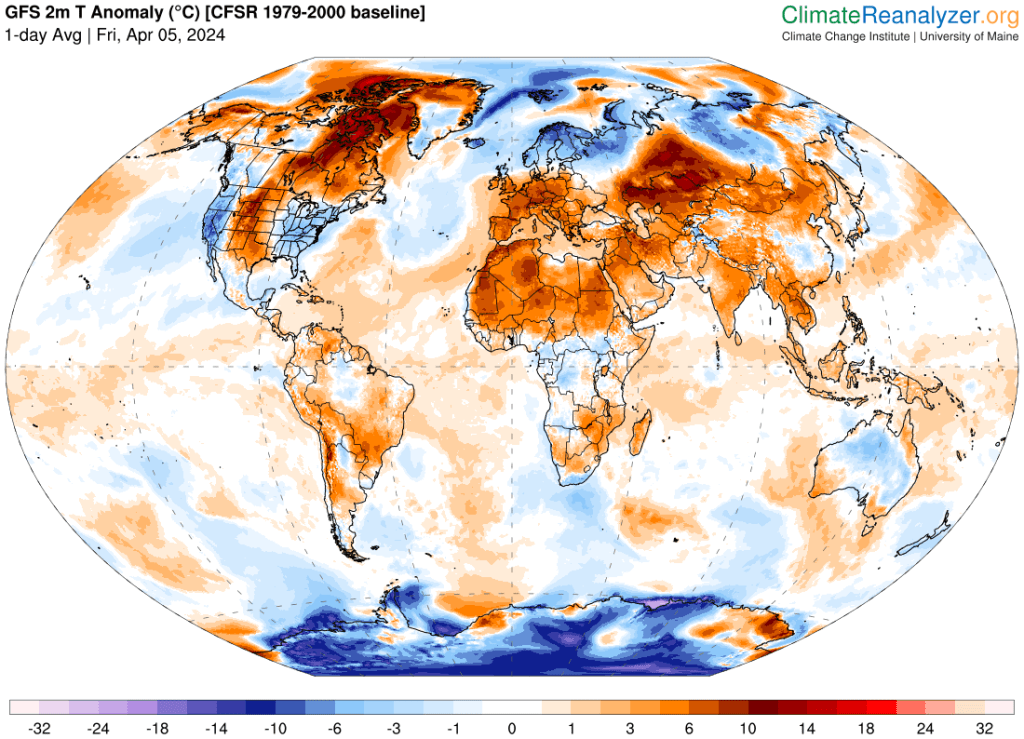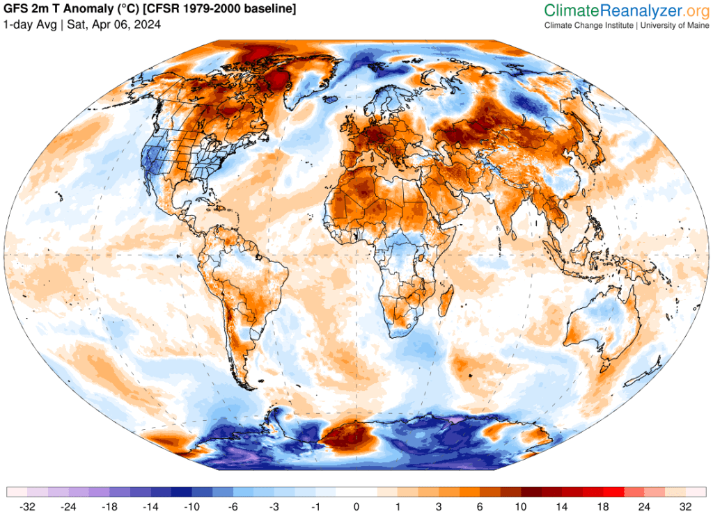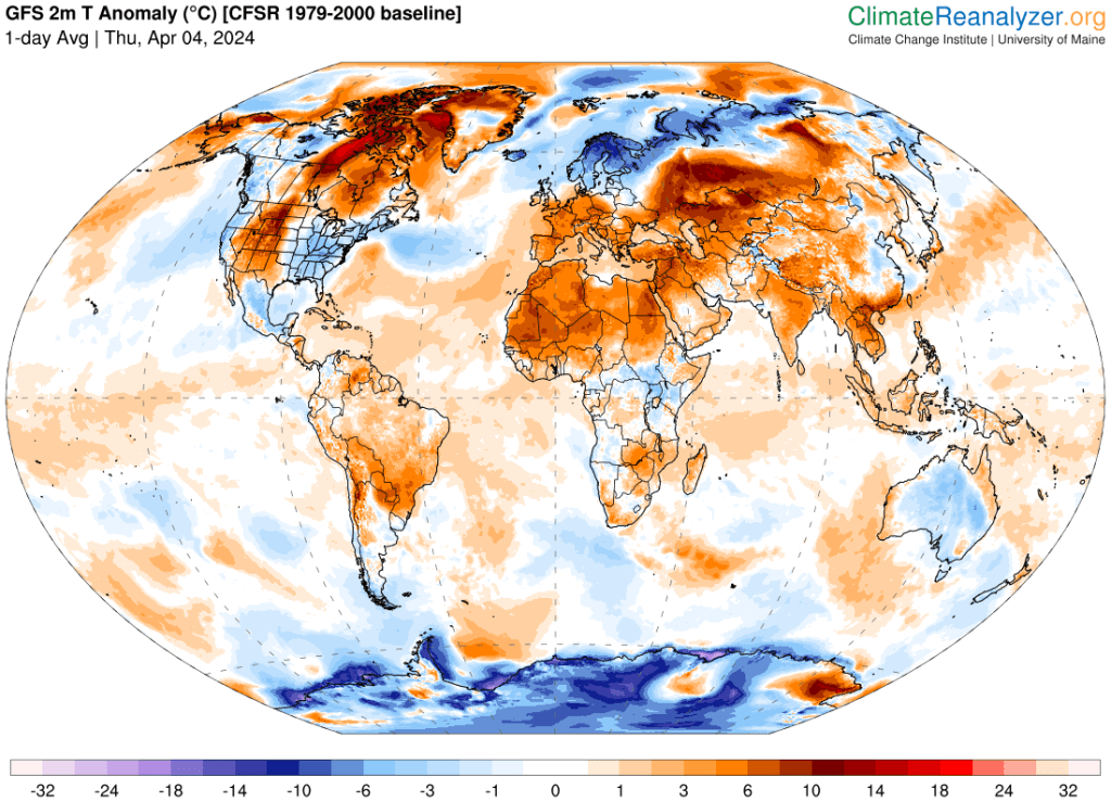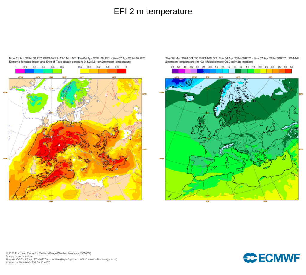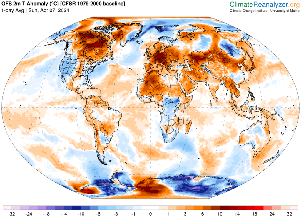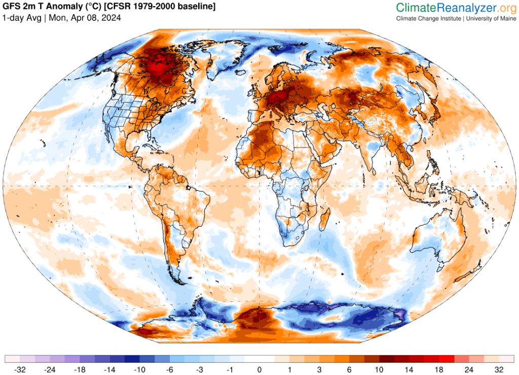 Chaleur record dans de nombreux pays d’Europe, quasiment tous ! Déjà 20 pays européens ont atteint les 30°C un 8 avril alors que normalement ce devrait être 3 ou maxi 4.