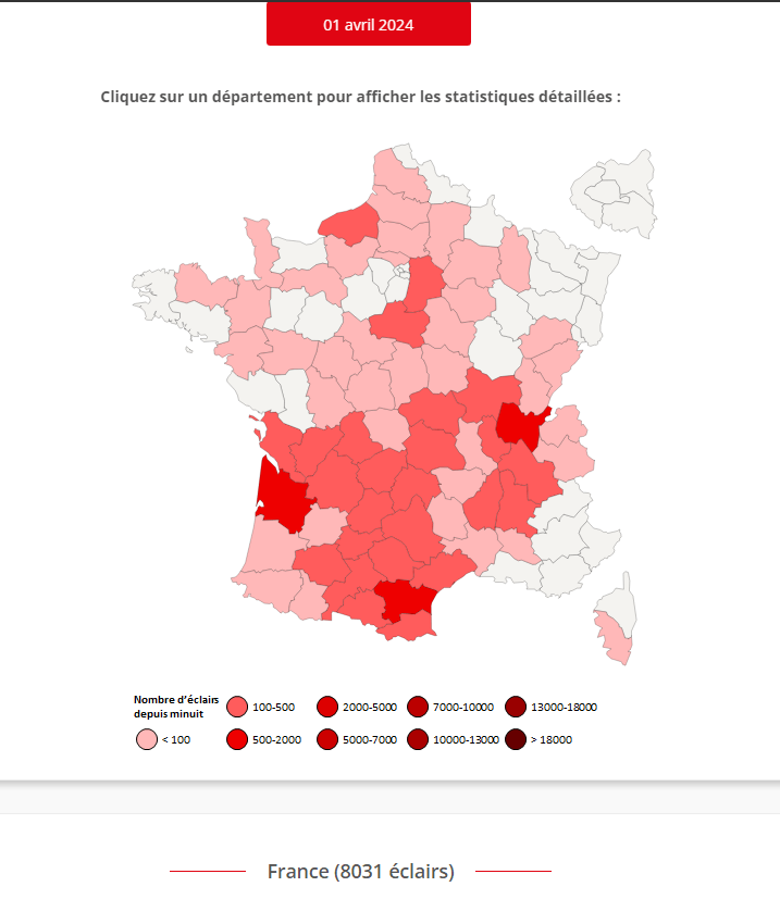 8031 éclairs relevés ce qui est pas négligeable surtout pour une activité de masse d’air froid. Source : Keraunos