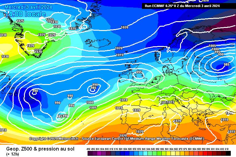 . Bas géopotentiels sur le nord-ouest de l’Europe / Hauts géopotentiels sur le reste de l’Europe