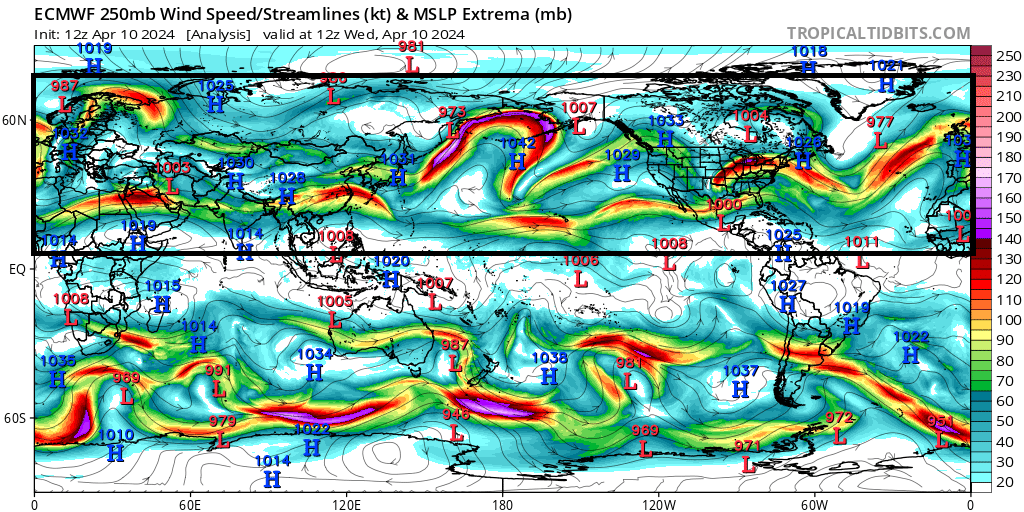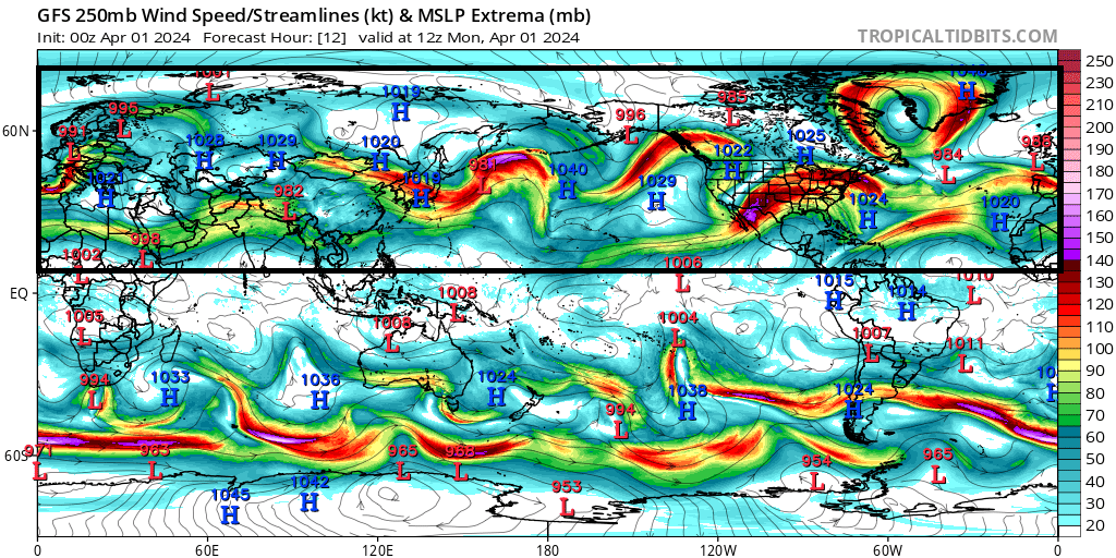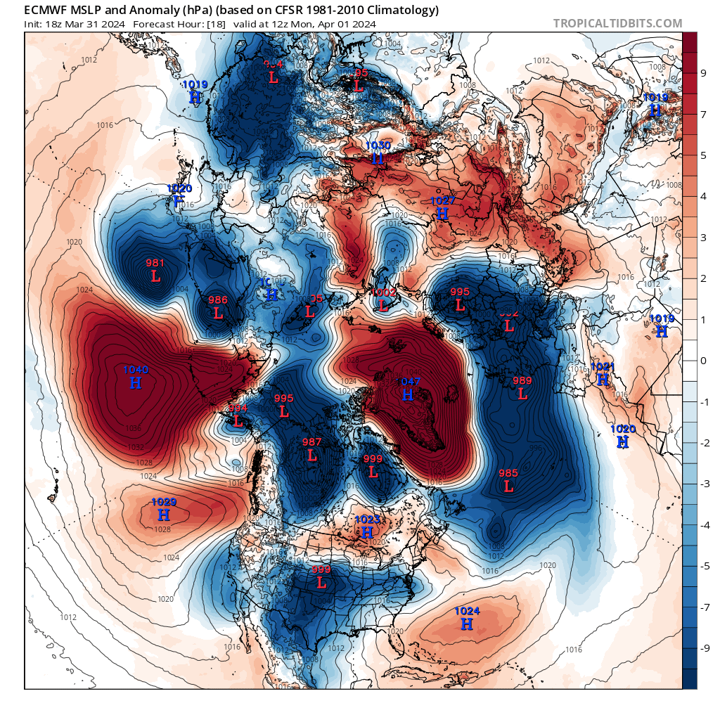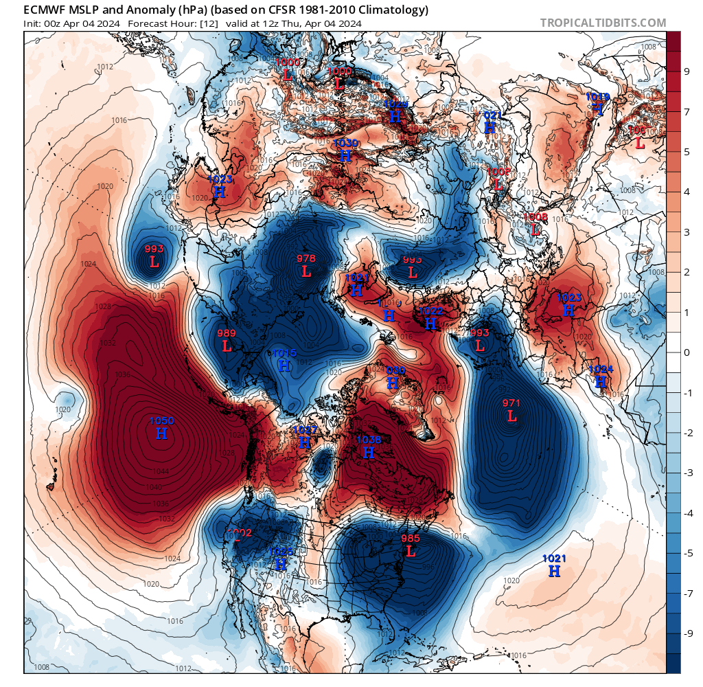 . Basses pressions nord et sud USA. Hautes pressions extrême est et ouest USA. Hautes pressions ouest et est Canada. Basses pressions nord et sud Canada. Basses pressions Alaska. Bas géopotentiels Alaska. Hauts géopotentiels Canada sauf centre-sud. Hauts géopotentiels est et ouest USA. Bas géopotentiels sud-ouest au Midwest des USA.