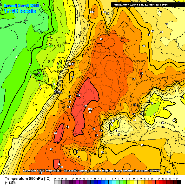 Stupéfiant de voir possiblement une masse d’air à + de 20°C à 1500 m d’altitude nous concerner entre vendredi 5 et samedi 6 avril. C’est une masse d’air très largement estivale qu’on ne voyait souvent pas durant les étés du XXème siècle.
