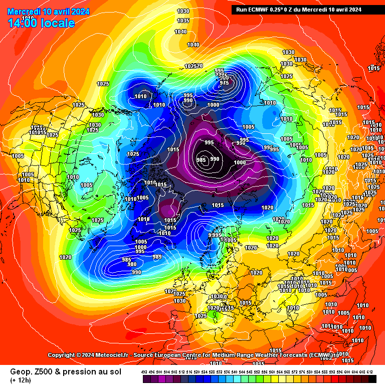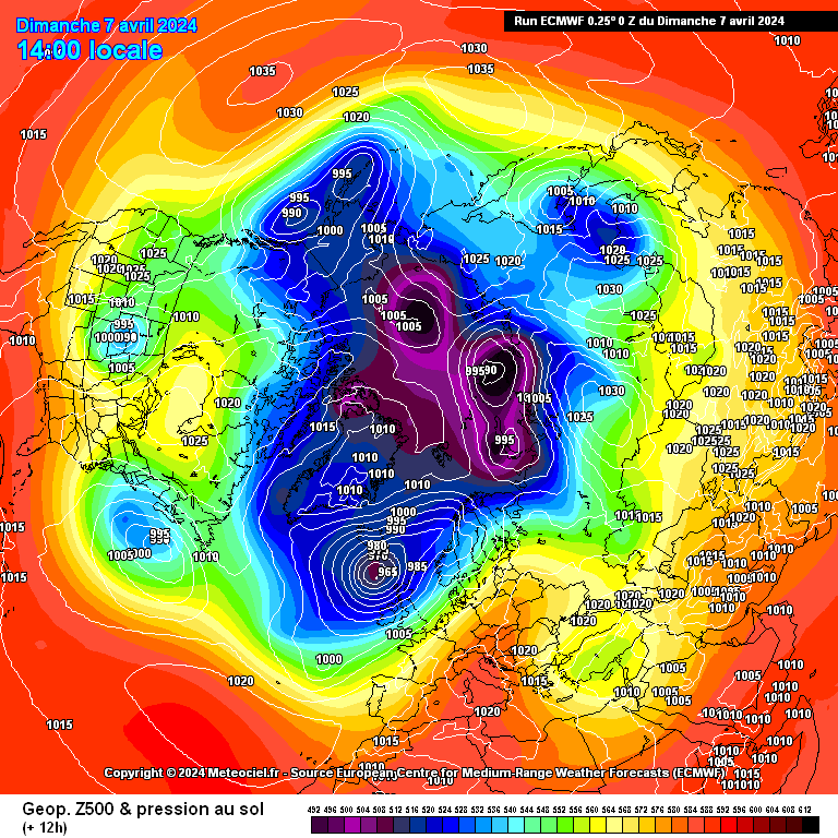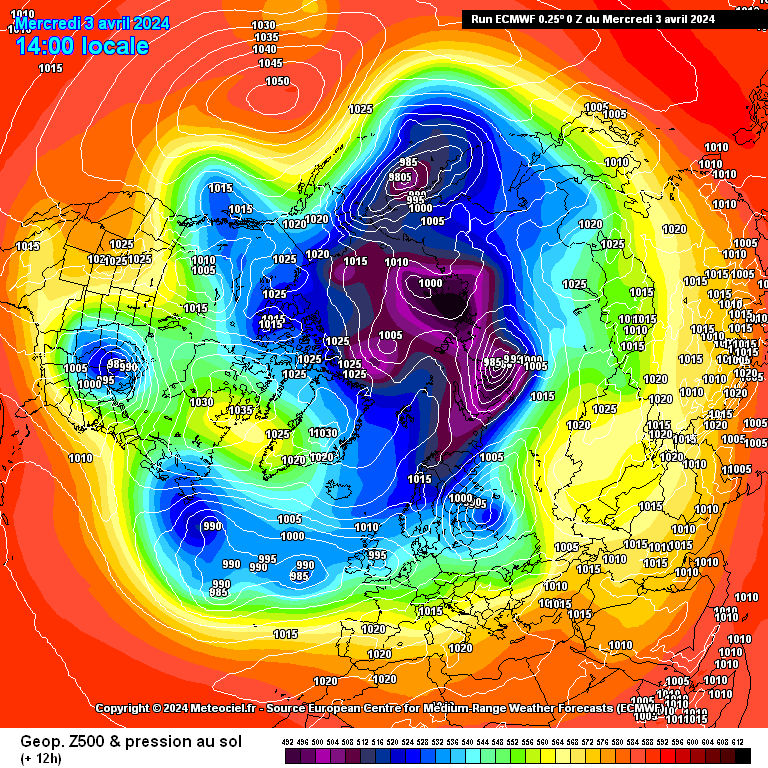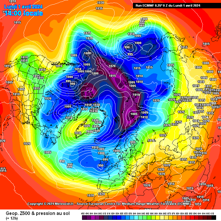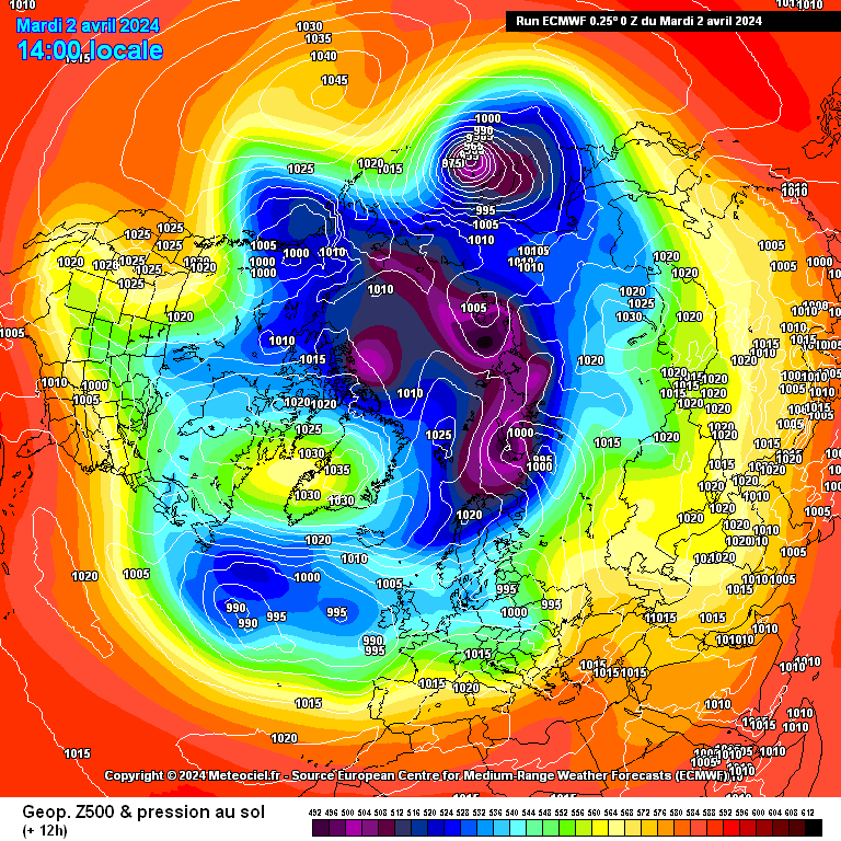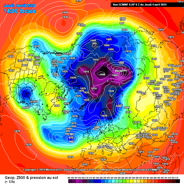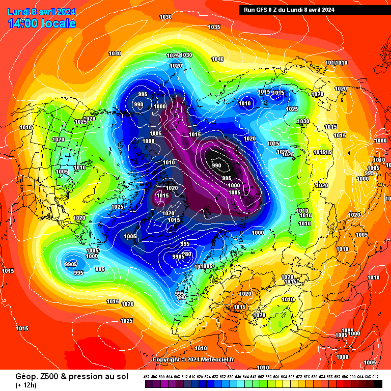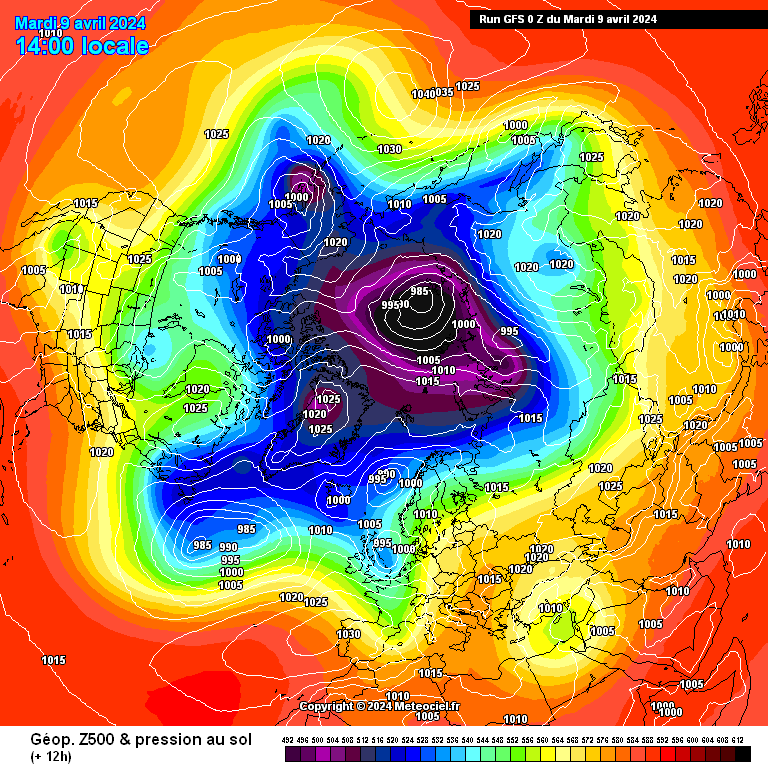 . Hauts géopotentiels bonne partie de la Russie (alternance bas et hauts géopotentiels extrême est Russie).
