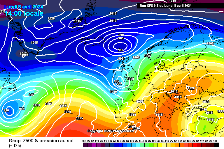. Hauts géopotentiels Scandinavie sauf nord-ouest