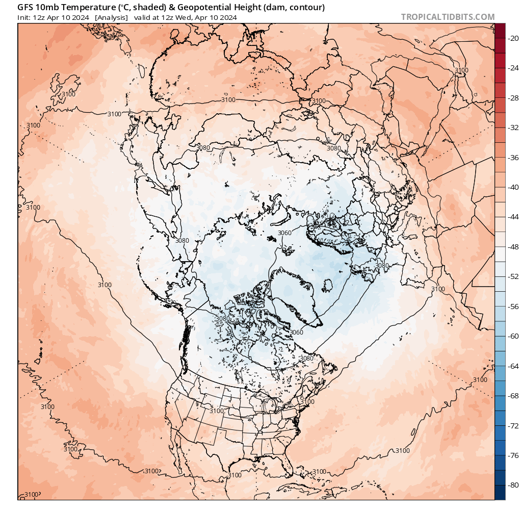 La date du réchauffement stratosphérique final sera autour du 4 mai ce qui est bien tardif cette année.