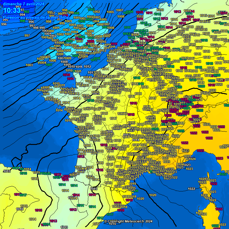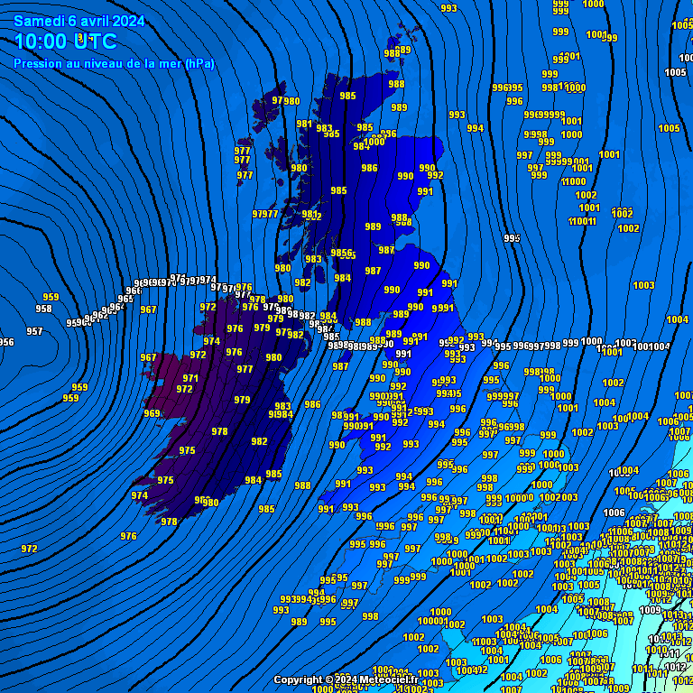 . Pressions dépressionnaires sauf bon quart sud-est où elles sont légèrement anticycloniques