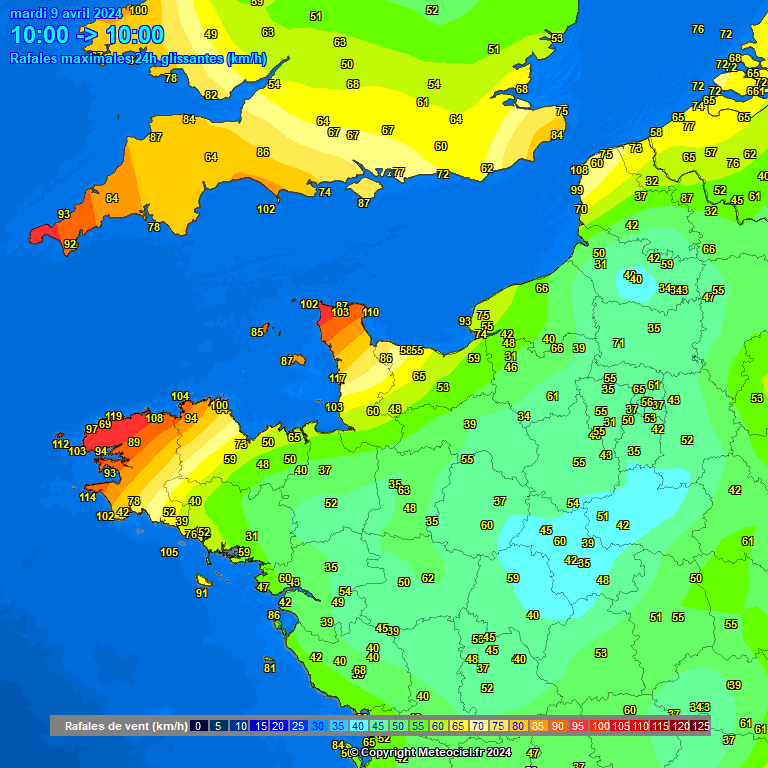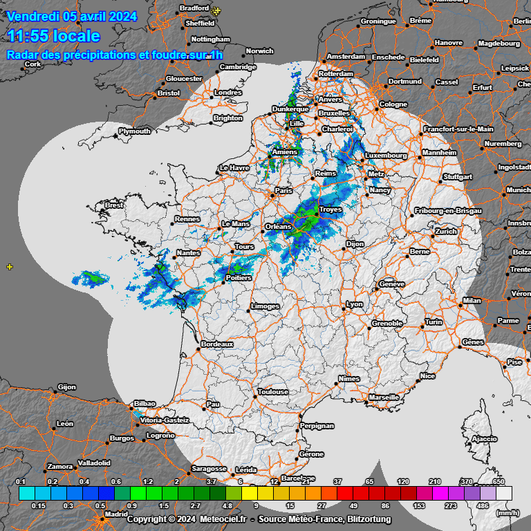 . Le talweg d’air froid d’altitude traverse le pays d’ouest en est tandis qu’en surface les pressions commencent à remonter par le sud-ouest. Le front froid pluvieux et localement orageux stationne encore sur la façade est avant de s’évacuer. A l’arrière c’est un ciel de traine qui prend le relais par les côtes et qui se diffusent de plus en plus dans les terres au fil des heures. De nombreuses averses parfois gréligènes et/ou orageuses sont à attendre. L’extrême nord, le sud-est et la Corse seront un peu plus à l’écart. Vent d’ouest à sud-ouest sensible sur les côtes de la Manche. La tramontane se lève également dans son domaine.