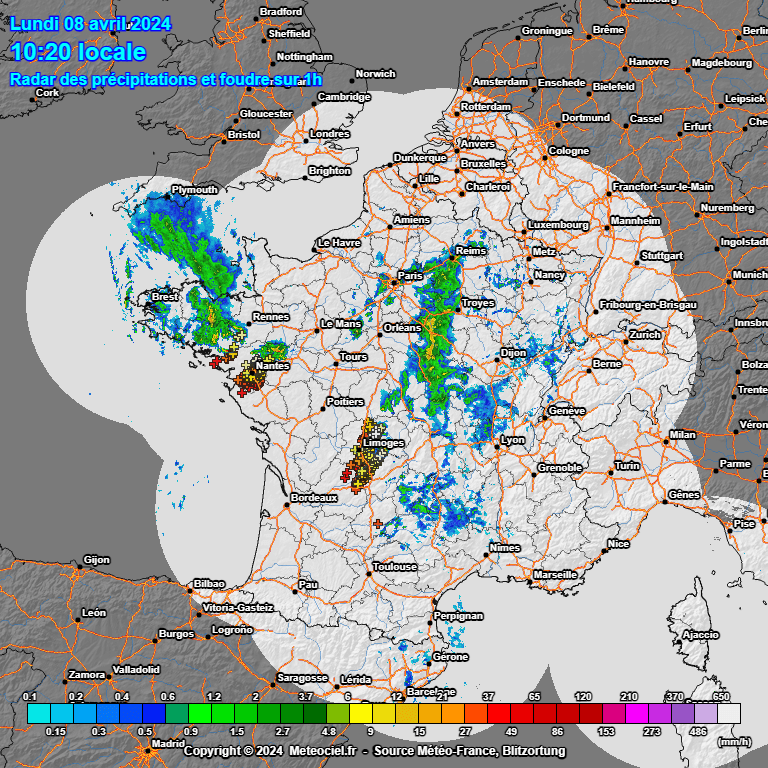 . Le front froid stationne encore un peu sur la façade est avec quelques pluies retardataires. A l’arrière, c’est un ciel de traine qui sera de plus en plus actif au fil des heures, qui s’installera avec de fréquentes averses et orages. Le quart sud-est sera davantage à l’abri des averses