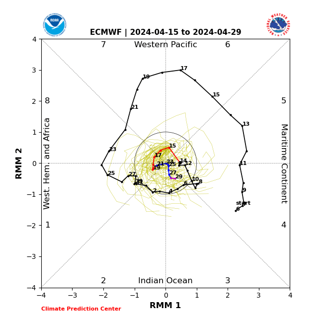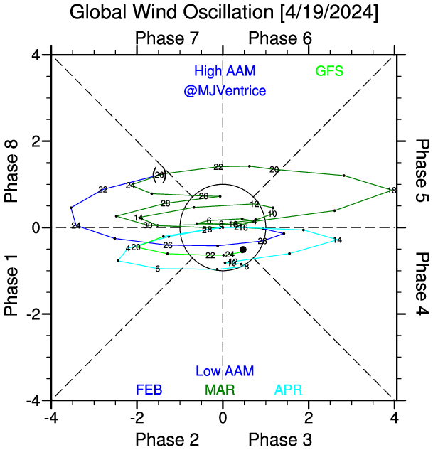 La MJO aura été très opérante sur mars avec un décalage tout au long du mois de la convection sur l’hémisphère occidental. Cela aura influé sur la dynamique et le placement des centres d’action à l’échelle hémisphérique. Les phases 5-6-7 fort actives, auront par exemple fortement favorisé un temps perturbé sur l’Europe de l’ouest.