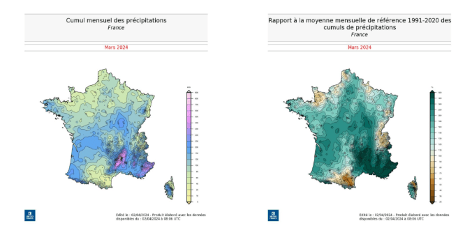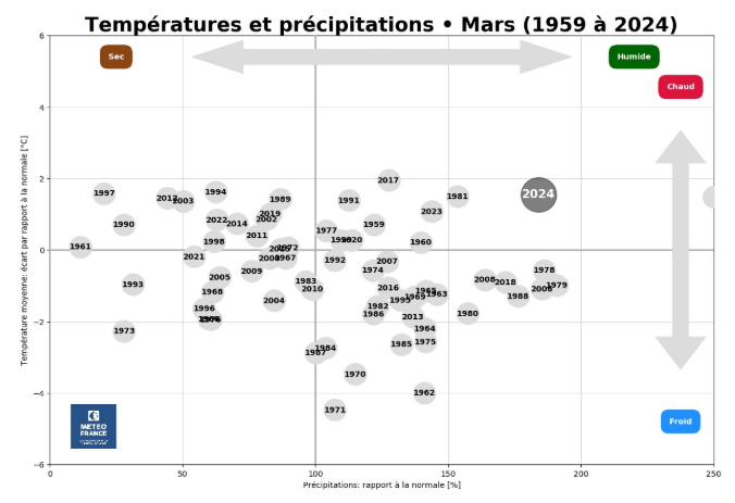 Plus de détails sur : https://meteofrance.fr/sites/meteofrance.fr/files/files/editorial/Bilan_definitif_mars_2024_020424.pdf