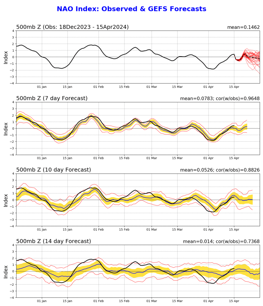 L’oscillation nord atlantique nous influence directement plus encore d’octobre à avril. En mode réchauffement climatique, une NAO- en hiver a + le potentiel de nous ramener humidité et froid sans excès que la NAO+ qui devient dans le nouveau paradigme climatique souvent propice à l’anticyclone subtropical sur l’Europe. Sur mars, NAO fluctuante assez neutre avant une plongée plus franche toute fin de mois qui a d’ailleurs été associée à une période de Pâques très agitée, très instable sur l’Europe de l’ouest. La NAO- est plus apte à provoquer un temps agité que la NAO+ en général.