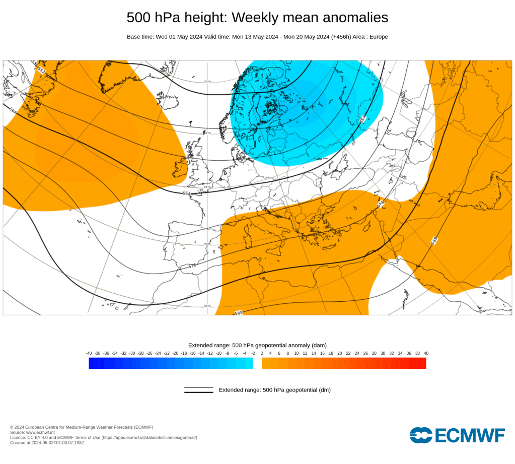 L’anticyclone et des conditions plus chaudes pourraient revenir vers le 28 mai à la transition avec juin.
