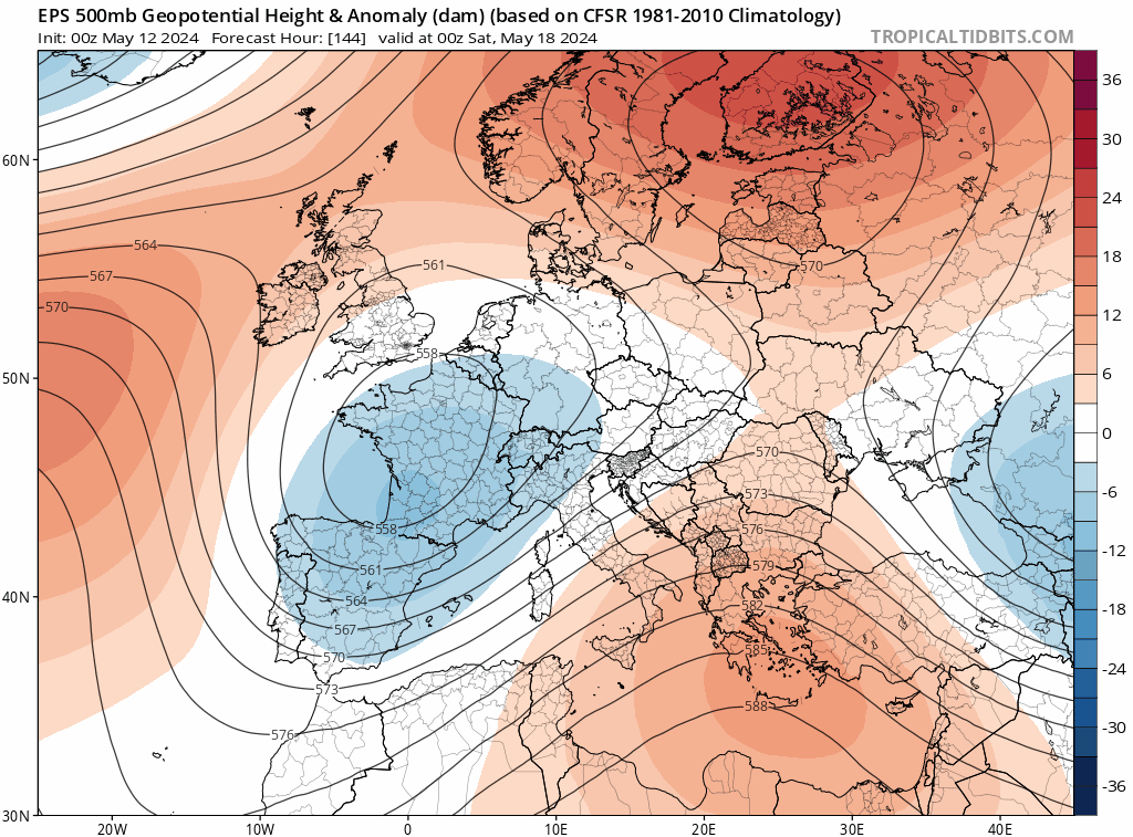 La goutte froide reste bloquée en basculant peut être un peu vers le sud et le bassin méditerranéen. Pour nous cela changerait pas grand chose avec la multiplication d’averses et d’orages quasiment en toute région que ce soit le samedi et le dimanche. Le pourtour méditerranéen et la Corse resteraient plutôt épargnés. A noter tout de même que le dimanche, les averses pourraient se raréfier au nord de la Loire avec davantage d’éclaircies durables.