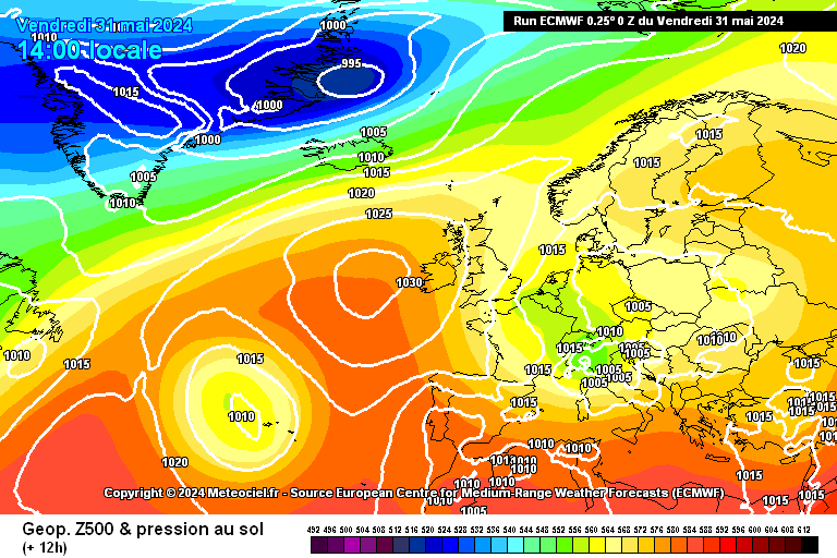 . Hauts géopotentiels Scandinavie sauf extrême ouest