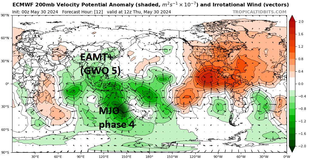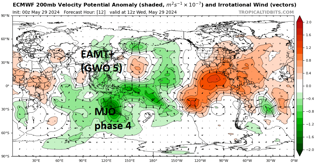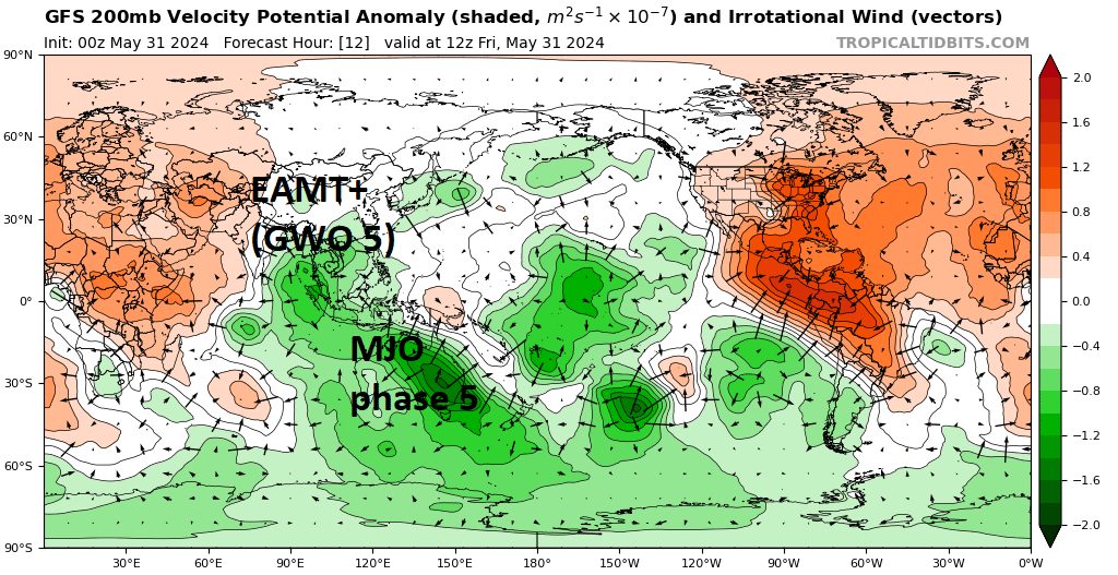. MJO phase 5 (convection plus marquée sur l’Australie)