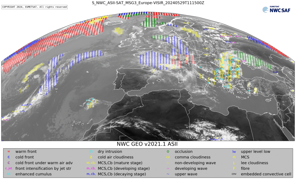 . Un flux océanique d’ouest à nord-ouest est installé véhiculant une perturbation assez active alimentée par une rivière atmosphérique et associée à un talweg de courte longueur d’onde. Les pluies les plus importantes se concentrent sur la moitié nord, tandis que la moitié sud est plus épargnée. A l’arrière du front froid, quelques averses parfois orageuses pourront se déclencher cet après-midi sur le quart nord-est. Temps plus ensoleillé dans le sud-est et en Corse.