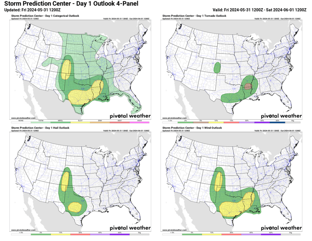 Risque d’orages parfois violents dans quelques heures du Texas au Mississippi, ainsi qu’en allant vers le Colorado.