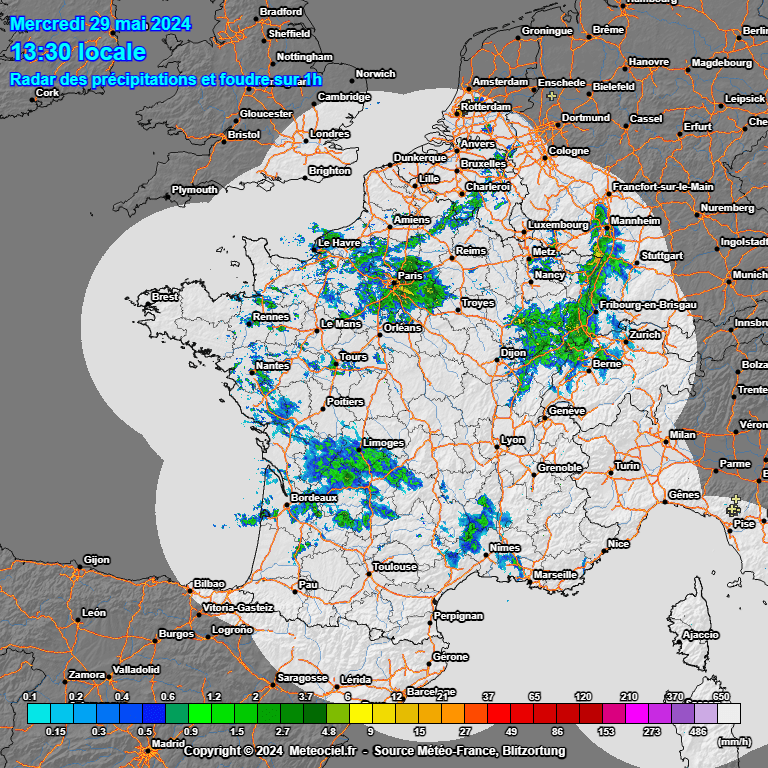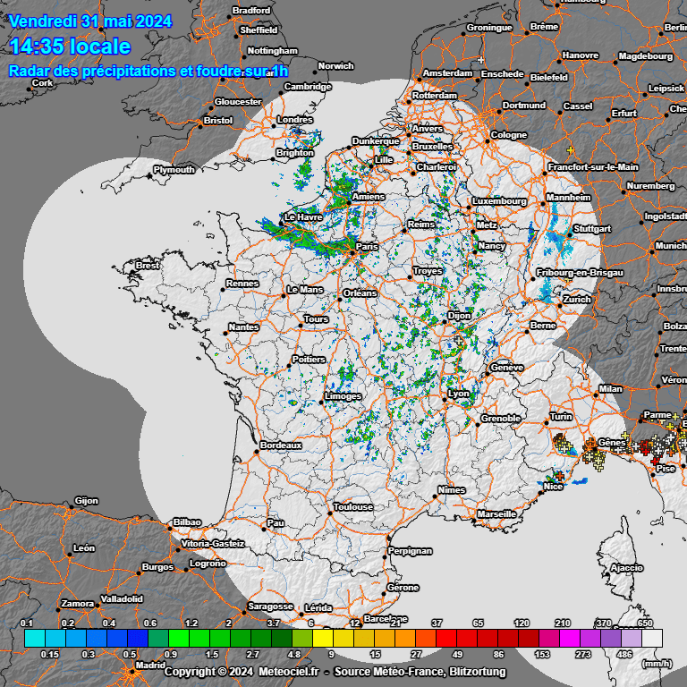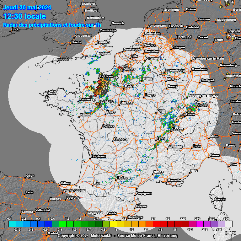 Orages actuellement sur la Normandie qui se déplacent actuellement vers l’Ile de France.