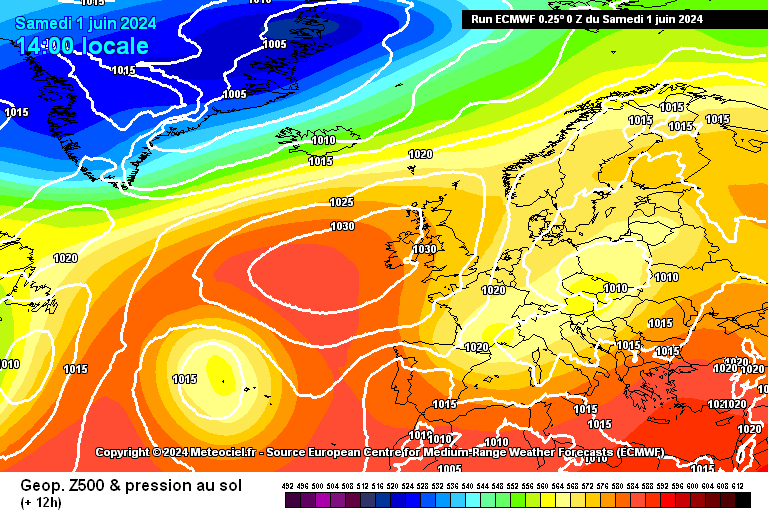 . Hauts géopotentiels en Europe sauf nord-ouest et est