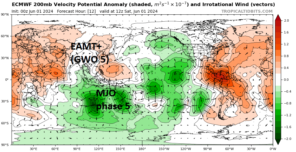 . MJO phase 5 (convection plus marquée sur l’Australie)