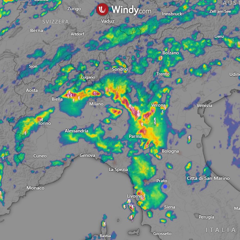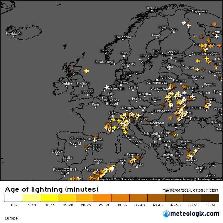 Orages assez nombreux cet après-midi en Europe notamment encore une fois dans le nord de l’Italie.