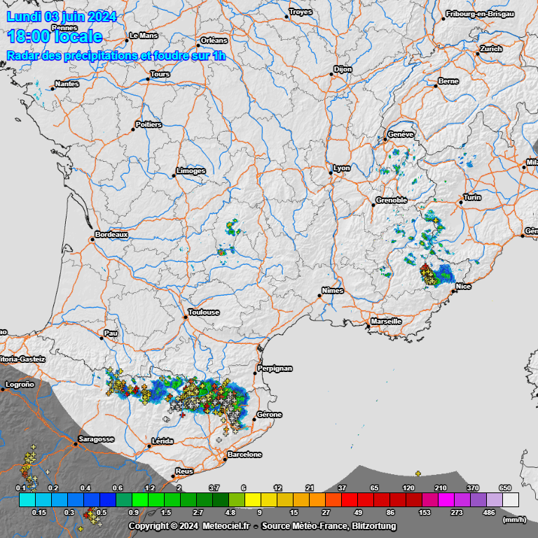 Des orages concernent la Catalogne en cette fin de journée avec de bons cumuls de pluie localisés.