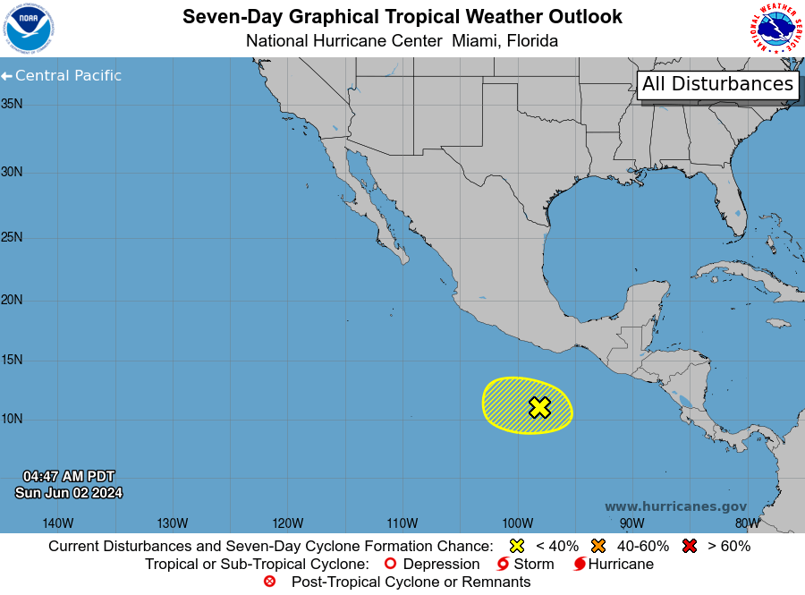 Une première onde tropicale à surveiller sur l’est Pacifique. Seulement 10% de chances à horizon 7 jours de développer une tempête tropicale consistante ou un ouragan.