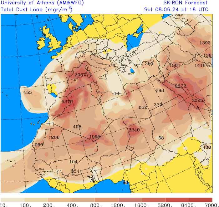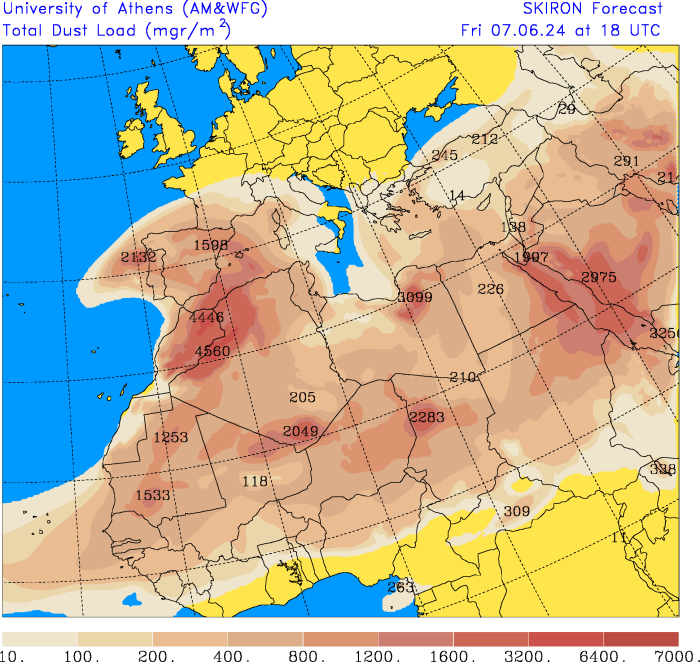 On notera aussi qu’il y a du sable saharien dans l’atmosphère en quantité assez modérée mais qui peut inhiber quelque peu le potentiel orageux surtout associé à un ciel potentiellement voilé.