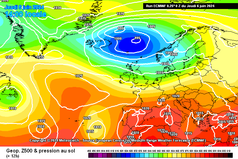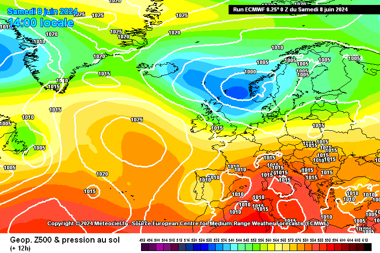 . Hauts géopotentiels en Europe sauf nord-ouest
