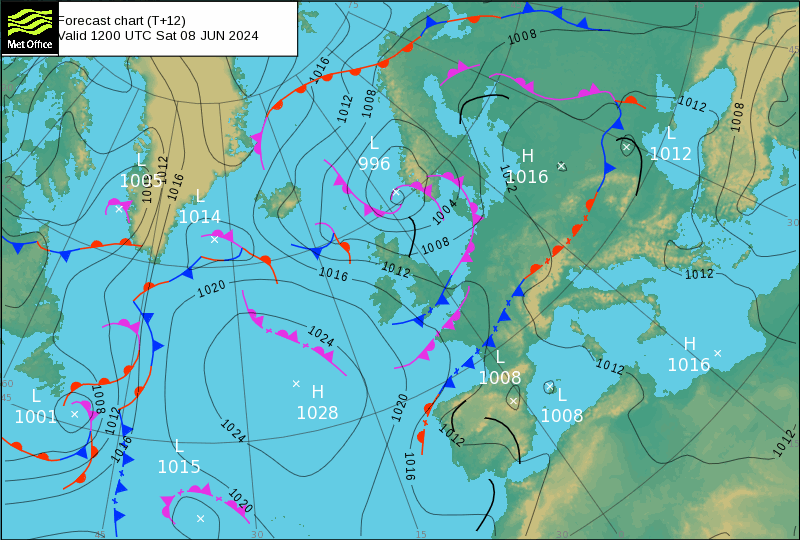 . Bas géopotentiels ouest Scandinavie / Hauts géopotentiels est Scandinavie