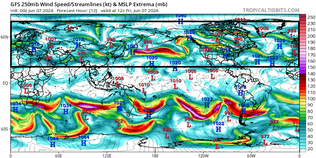 . Basses pressions USA sauf nord-ouest et Rocheuses. Basses pressions Canada sauf nord et sud-ouest. Basses pressions Alaska. Bas géopotentiels Alaska. Hauts géopotentiels Canada sauf moitié ouest, extrême est et sud. Hauts géopotentiels USA sauf moitié est.