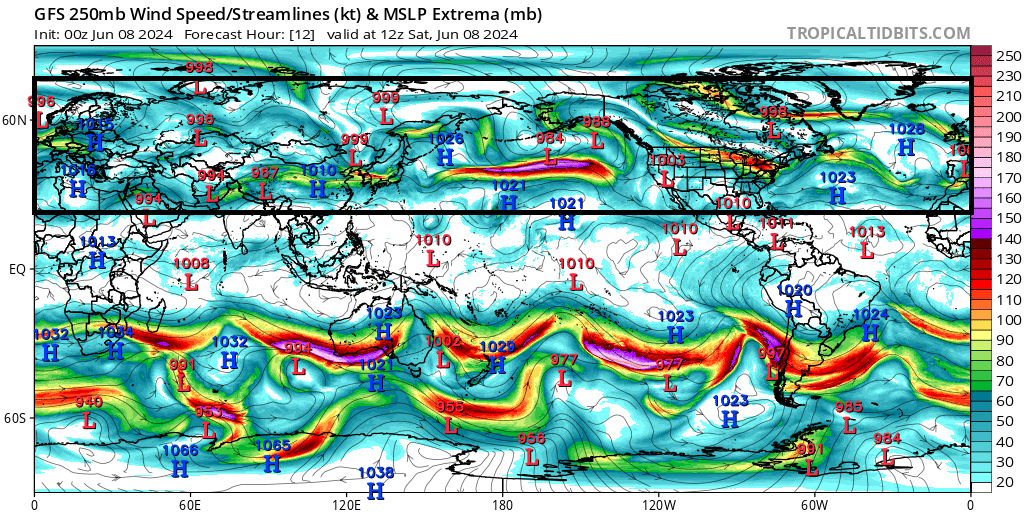 . Courant jet de sud-ouest à 300 hPa