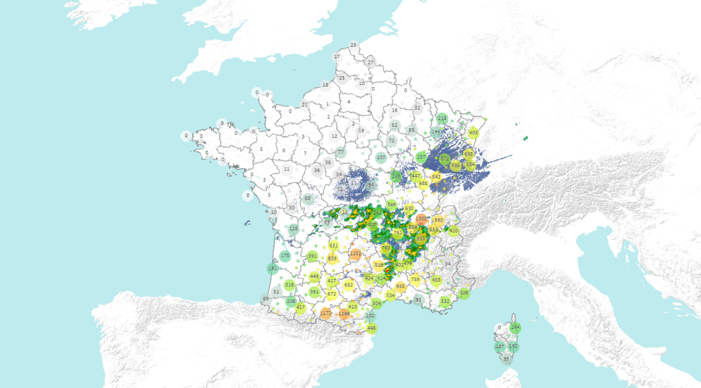Multiplication des orages du sud-ouest au centre-est, orages pouvant être localement forts avec des pluies diluviennes (risque d’inondations) et de fortes chutes de grêle avec parfois un diamètre important. Risque de supercellules. Temps plus clément sur la moitié nord malgré quelques passages nuageux. Chaleur lourde au sud, températures douces à chaudes au nord.
