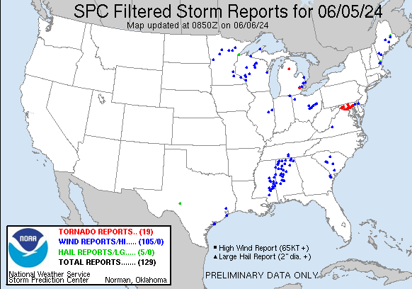 19 reports de tornades il y a quelques heures sur le Maryland et le Michigan.