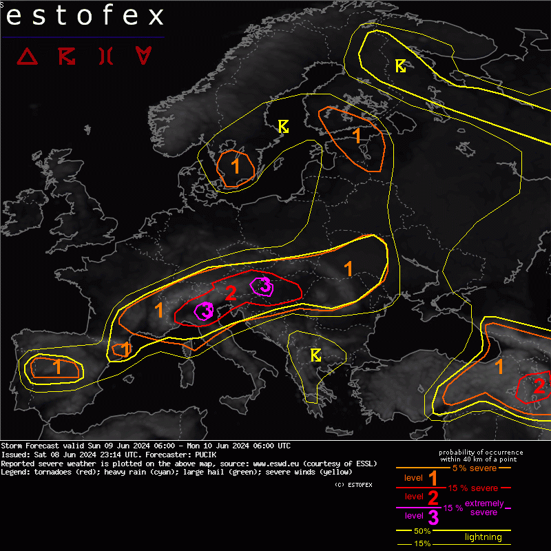 Orages très violents à venir sur le nord de l’Italie, Autriche, Slovaquie notamment.