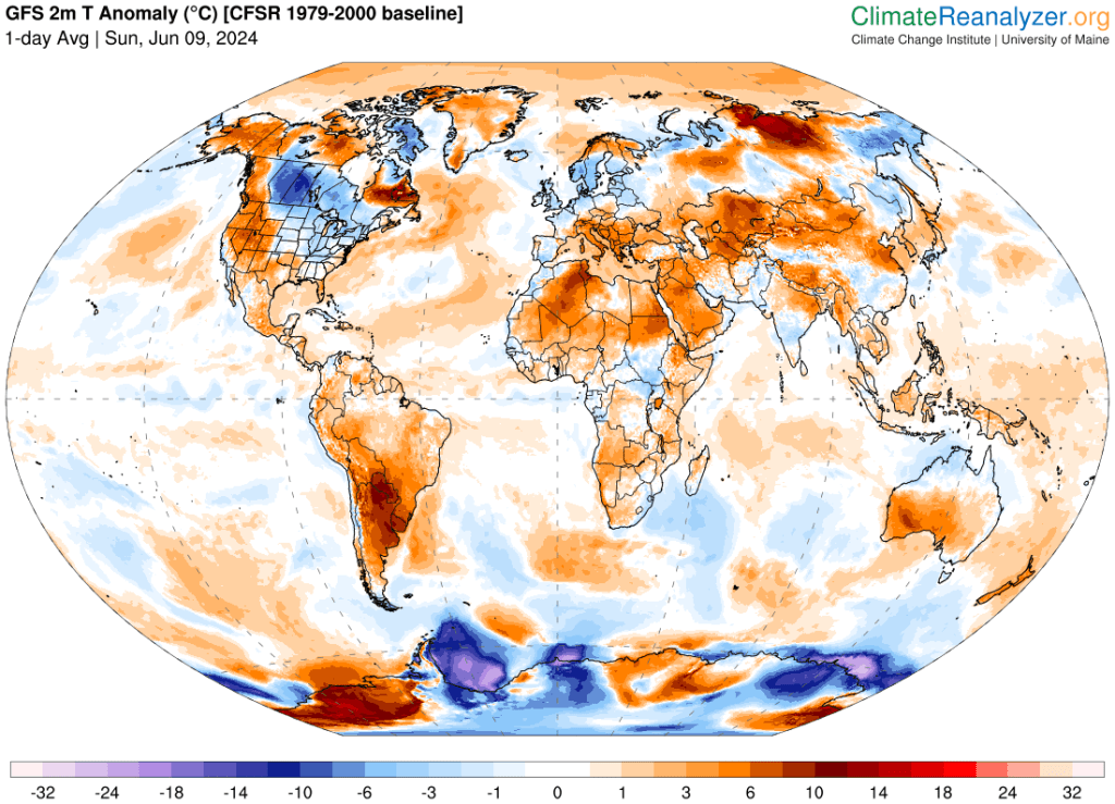 . Anomalie chaude sur USA sauf nord, plaines centrales, Grands Lacs et nord-est. Anomalie chaude est Canada, Yukon, Nunavut, Colombie Britannique. Anomalie froide sur sud Nunavut, Manitoba, Saskatchewan, Alberta. Anomalie chaude en Alaska.