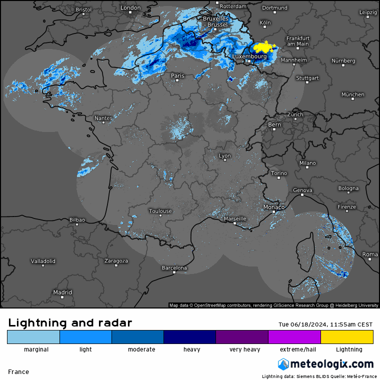 17 604 éclairs relevés ce 18 juin. Source : Keraunos