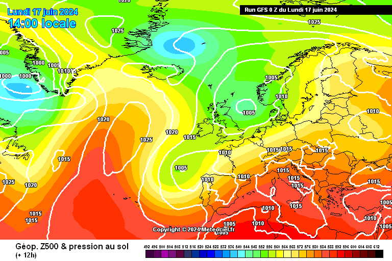 . Bas géopotentiels ouest Scandinavie / Hauts géopotentiel est Scandinavie