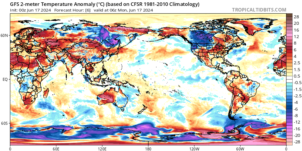 . Anomalie chaude sur USA sauf ouest/nord-ouest/extrême nord et nord-est. Anomalie froide gagne du terrain au Canada sauf est/nord-est, Ontario et Yukon. Anomalie chaude en Alaska.