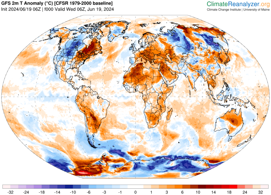 Actuellement, 156 pays battent des records de chaleur à ces heures-là, soit 250 % de plus que n’importe quel MOIS COMPLET avant la mi-2023. Juin 2024 bat environ le DOUBLE des records de stations (mensuels/de tous les temps) par rapport à mai 2024, le mois le plus record de l’histoire. Unique en son genre.