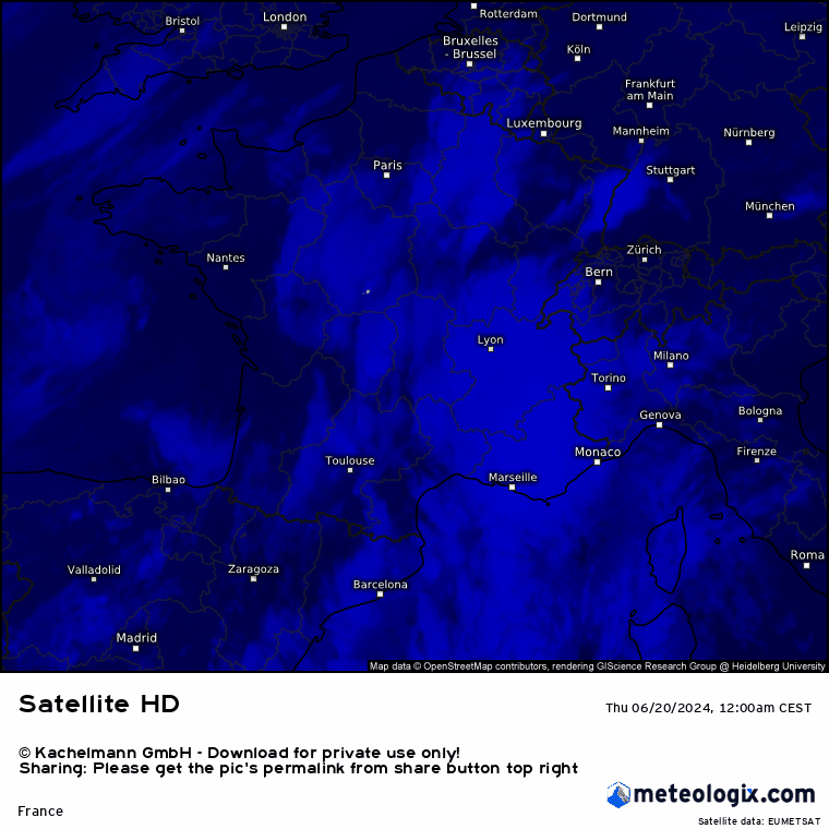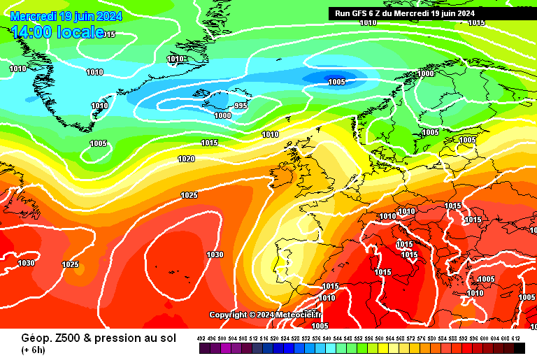 . La goutte froide tend à remonter sur le pays tandis que les géopotentiels et les pressions remontent au nord de la Loire. Un autre talweg secondaire va finir par déstabiliser le temps en remontant de Péninsule Ibérique. D’autres orages à prévoir.