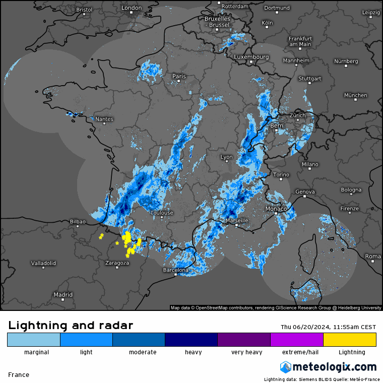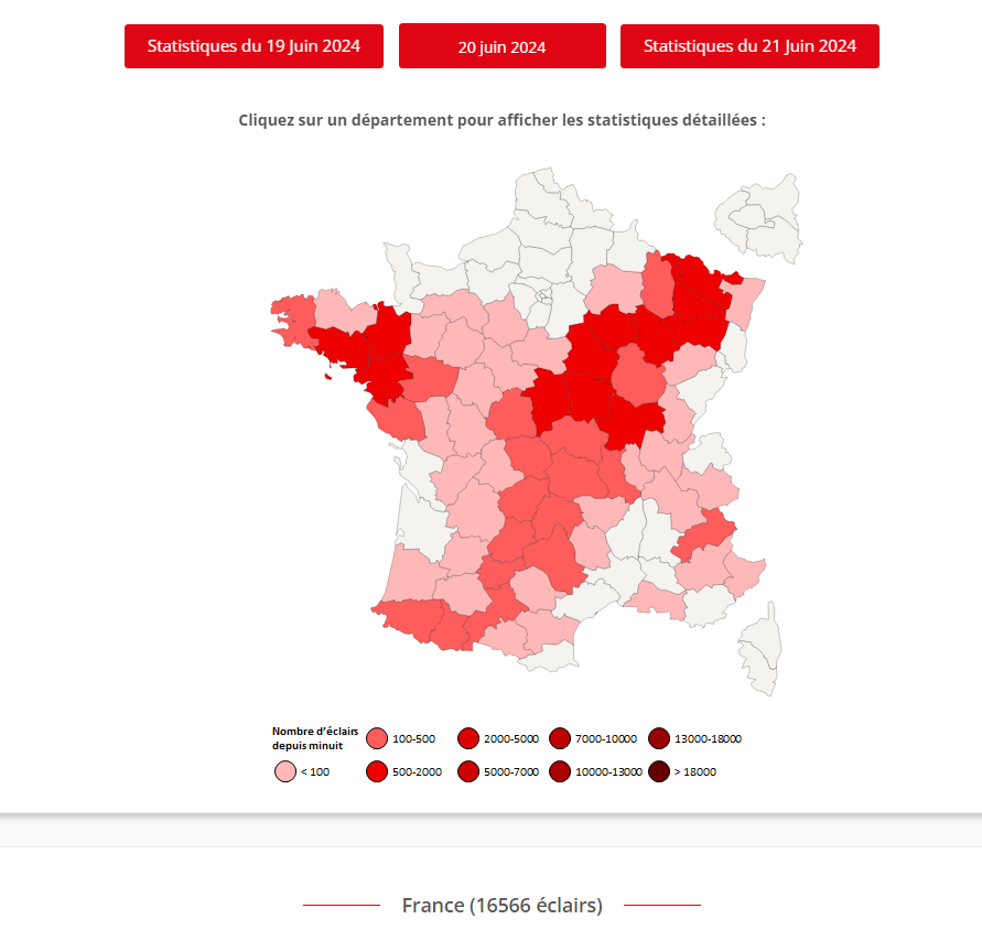 16 566 éclairs relevés le 20 juin 2024. Source : Keraunos